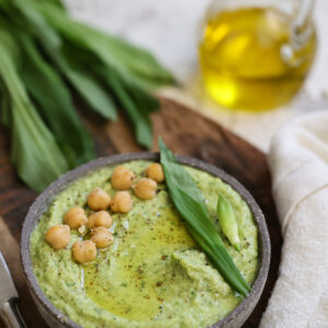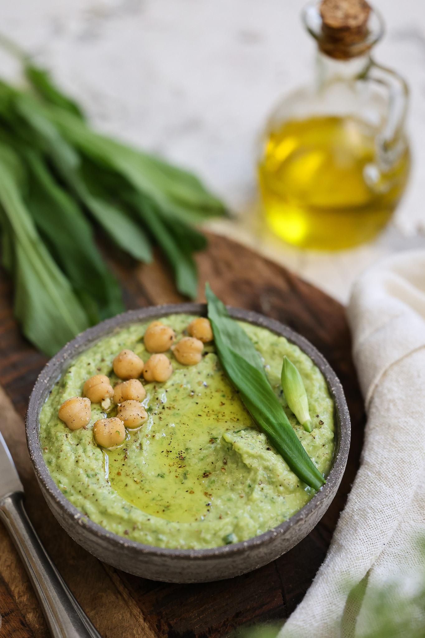 Etwas kräftiger und gleichzeitig wunderbar frisch präsentiert sich der Bärlauch-Hummus. Die Kombination aus Kichererbsen, Tahin und Olivenöl sorgt für eine samtige Konsistenz, während der Bärlauch dem Ganzen eine lebendige, grüne Note verleiht. Durch einen Spritzer Zitrone entsteht eine angenehme Frische, die den Hummus leicht und ausgewogen wirken lässt. So passt er nicht nur als Dip zu Gemüse, sondern auch als Aufstrich oder als Bestandteil eines kleinen Frühlingsmenüs. Die Zubereitung ist unkompliziert und macht den Hummus zu einer idealen Ergänzung für die schnelle, saisonale Küche.