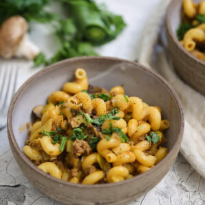 Wenn du ein schnelles, cremiges und unkompliziertes Wintergericht suchst, das trotzdem richtig viel Geschmack hat, wirst du diese Hackfleischpfanne lieben. Sie kombiniert Hackfleisch, Pasta, Pilze und Lauch zu einem unglaublich aromatischen Alltagsgericht, das in nur 25–30 Minuten fertig ist.