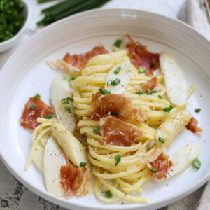 Cremige Spargelpasta mit weißem Spargel & Prosciutto